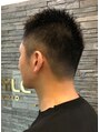 サイド、バックは6mm~3mmで刈上げトップは2~3cmの長さに設定し、セニングをいれて動きのでるようにしました。