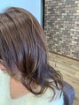 ローレイヤー+【MATERIA G】アッシュとバイオレット。毛先は白髪染めで染めています。毛先は黄みに抜けやすいのでアッシュベースにバイオレットをまぜています。白髪染めに見えないグレイヘアカラー。