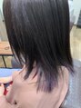 ワンレン+ソヴァ―ル【edol】バイオレット+インナーカラー【トレニージョ】チェリーレッドとグレー。インナーカラーの部分は以前のブリーチハイライト部分にオンカラー。