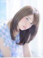 重ため前髪のミディアムも顔まわりにレイヤーを入れることで軽い印象になり、かつ透明感のある今流行りのアッシュベージュでふんわり柔らかい質感に。32mmでゆるくまいたり、アレンジしやすいのもこの長さのいいところ♪