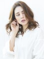 根元を立ち上げた“かきあげバング”を、センターパートにした大人ミディ。抜け感のあるアッシュベージュ×くせ風ウェーブで、リラックス感のあるやわらかな質感を再現