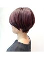 前下がりショートレイヤーに、モーブピンクの組み合わせが可愛い。髪の落ちる位置を見極めながらレイヤーを丁寧に切るので、削ぎを最小限で済ませます。『軽さや動きは出るけど、ツヤやまとまりはある。』そんなスタイル作りが平沢のこだわりです!