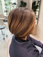 顔まわりに集中している白髪をカモフラージュしつつ全体的に立体的に見せれるようにハイライトをいれています。カット担当:スタイリストNATASHA