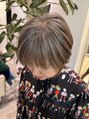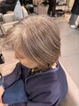 白髪の明るさを活かし淡く染めることで伸びてきた時の根元の境目が気にならないようにしています。さらにメリハリをつけるためにローライトをたしています。カット担当:スタイリストNATASHA