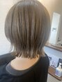 ブリーチリタッチをして寒色ベージュをオン◎透明感バッチリです。カットはライフスタイルに合わせてギリギリ縛れる長さのボブです。表面は少しレイヤー。前髪は帽子を被ることが多いので、少し短めのオン眉で帽子を被ってもちょうど良い長さになるように