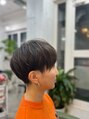 耳周りと襟足を刈り上げコンはパクトショートに。直毛で襟足に浮くクセあり、なので刈り上げて無くしました。ハイライトはブリーチではなくカラーの明るい色でナチュラルに。