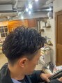 地毛は直毛でツンツンしてまとまらない。大人っぽくが希望だったのでニュアンスパーマでナチュラルにくせ毛っぽく。グリース仕上げでスタイリングが簡単!
