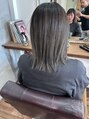 ダブルカラーで作るペールホワイトのハイライト。ベースのダークなアッシュとのコントラストでより軽やかで透き通った印象に!縛っても◎