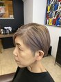 何度かブリーチ経験のあるお客様スタイルです。ハイライトを入れアンダーはあえて真っ黒で刈り上げメリハリのあるスタイルにしてます。白髪の多い方ですがサイドの刈り上げは染めず、全体も白髪染めは使用しておりません。ナチュラルなカラーを楽しめます。