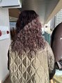 柔らかなウェーブパーマに、血色感のあるピンクベージュを合わせたロングスタイル。動きとツヤが出て、スタイリング剤をなじませるだけで可愛く決まります。
