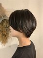 えり足はスッキリと短くカットしひし形になるようにレイヤーを入れたショートボブスタイルです。片側を耳にかけることでワンランク上の大人な女性らしさや、上品さを出しています。