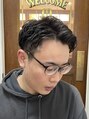 スパイラルパーマかけられてる方で、耳元をスッキリ出して、ツーブロックも短めの3mmを使ってるので、締りがよく男らしく見えます。