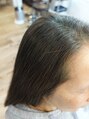 頭皮に優しく白髪染めをしたいと天然ヘナカラーに初挑戦。オレンジ色がNGでしたので天然のインディゴ(青色)をmixしてナチュラルなブラウンに仕上げました。デビューコース3回後の仕上がりです。