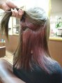 インナーブリーチ2回している髪色ベースに、インナーカラーで、薄めのピンクを入れました☆透明感ベビーピンクをメインで使ったインナーカラースタイルです!