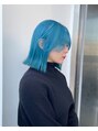 くびれヘア レイヤー ターコイズカラー ハイトーン