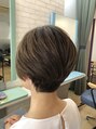 サイドは耳たぶくらい トップからレイヤーを入れきれいなシルエットがでるようカットしました。表面を軽くブローしオイルをなじませて終了のお手入れ簡単スタイルです。
