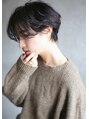 ショートボブの耳掛けスタイル。前髪長めのショートは襟足をタイトにカットして、少し耳に掛けるとシルエットにメリハリがついて◎毛先はニュアンスカールで味つけして。