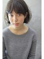 ぶつ切りの肩上重めボブ。バングをセンターパートにしてカジュアルにしました。イルミナカラーオーシャンアッシュで重めスタイルに軽さをもたせました。