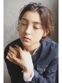 全体にくせっぽい感じでパーマをかけています。乾かすときに根元を立ち上げて決めすぎずラフにスタイリングするのがおすすめです。スタイリングはメルティバターで仕上げています。
