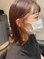 シースルーバングのロブスタイル。全体にはピンクバイオレット、インナーはケアブリーチで優しく色を抜いてピンクベージュをON! ブリーチのご相談などなんでもおまちしてます!