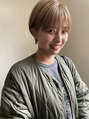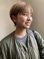 ハイトーンベージュのマッシュショート。全体を軽めにカットして、耳かけしてもおろしても◎カラーは1ブリーチしてからベージュでカラー。