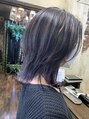 ブリーチ必須、バイオレットカラー!全体も毛先を目立たせる様、ダークトーンのアッシュ系カラー!色落ちは全体的にグレーホワイト系☆レイヤーカットスタイルが今っぽい^^