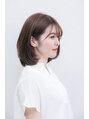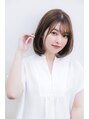 スタンダードな丸みボブ。流し前髪にすると重たくなりにくく、自然体なセットが好印象なスタイル。毛先が外ハネしないように入れられたカットで、乾かすだけで内巻きベースに。セットは内巻きにワンカール。
