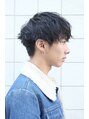 ラフな毛先の動きが爽やかなマッシュのパーマスタイルです。ウエットスタイリングで男らしさを出しています。