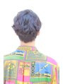 襟足を短く切り込んだ前下がりのショートパーマスタイルです。8:2パートにすることで重さが出て色気が出ます。