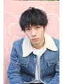 ラフな毛先の動きが爽やかなマッシュのパーマスタイルです。ウエットスタイリングで男らしさを出しています。