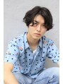 トレンド性の高いセンターパートにくせ毛の様なニュアンスのパーマをミックスしたショートスタイルです。
