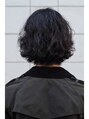 顔回りを切り込んだボブベースのウルフスタイルです。重さをもたせたカットをベースに、やや強めのパーマを加えて、ミュージシャンのような尖ったイメージを作りました。
