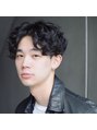メンズパーマ × センターパート