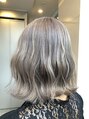 プラチナ感強めのグレーアッシュカラー!ナチュラルにハイライトも入ってます!カットはブツ切りのボブスタイルで、波巻きでラフな動きを出してます!