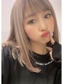 popteen★れいたぴ様★大人気メニュー★ミディアムレングスにエスケアブリーチを駆使してプラチナベージュカラーに♪ローライトバングもオシャレヘアの秘訣♪
