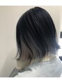 メリハリコントラストのインナーカラー♪ディープブルー×ホワイトシルバーインナー部分のブリーチ目安は2、3回。履歴により回数は異なります!