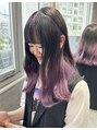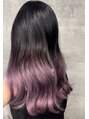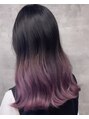 縮毛矯正履歴にブリーチカラーで「ピンクパープル」のグラデーション♪ダメージ具合を見ながら、ケアブリーチでダメージ少なくじっくりと時間をかけて脱色し、パーマ系履歴は入りにくいピンク系もあざやかに!ブリーチ目安は1回~2回(髪質により異なります)