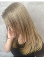 ブリーチ2回~、ホワイトブロンド。「さりげないエンドカラー」でイエローを♪黒や原色系など、個性派カラーに挑戦しにくい方も、ベースのカラーとなじみやすい色で作るエンドカラーはおすすめですよっ!ブロンドベージュの方はブラウン系もおすすめです♪