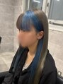 グレージュ×ブルー デザインカラー 派手髪 渋谷 学割
