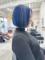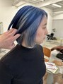 コンパクトなミニボブ ブリーチでしっかりベースをトーンアップ後表面はアクリルブルー内側はペールブルーでコントラストをつけました。