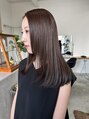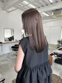 ナチュラルなストレートのセミロングブリーチなしで育てたベースに暗めのグレージュを乗せて、透け感のある色味へブリーチなしです。