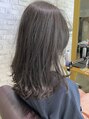カラーは大人気の【ミントアッシュ】で赤みを抑えてます。7レベルに設定しているので室内では落ち着いて、室外では透明感ある色です◎顔まわり、トップにかけてレイヤーを入れたくびれスタイルです。※オリジナルカラーの為予約は吉見指名でお願いします。