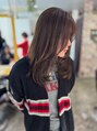 ツヤ感たっぷりのナチュラルストレート。重さを残したラインでまとまりよく、乾かすだけで扱いやすいのが魅力。透明感のあるグレージュカラーで、上品さと柔らかさを両立した大人スタイル。