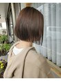 首元にそうようにカットしたワンレングスボブ。毛先の収まりが良いように工夫してカットしています♪カラーは赤みを抑えて透明感を出すブルージュでナチュラルにカラーリング♪