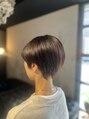 襟足をすっきり締め、後頭部に自然な丸みが出るようにカットしたショートボブスタイル。トップにボリュームが出やすいようにシルエットを調整し、横から見た時の立体感がきれいに見えるデザインにしています。