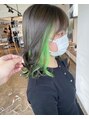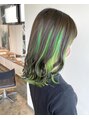 トップ暗めのグリーンアンブレラカラー