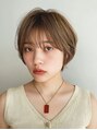 柔らかな質感を出すベージュカラーと、丸みのあるシルエットが女性らしいショートボブ。シースルーバングで目元を明るく見せ、耳にかけることでスッキリと知的な印象に。骨格に合わせてカットするので、絶壁解消や小顔効果も抜群な万能スタイルです。