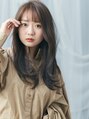 重めスタイルになりがちなダークカラーロングは、シースルーバングで透け感を。オリーブアッシュやシアーベージュのくすみカラーでやわらかフェミニンな印象に。くせ毛風カールでニュアンス感ある動きを出せば、軽やかで透明感ある仕上がりに格上げします。