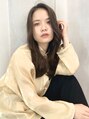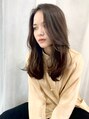 大人女子にオススメ!クールビューティーな雰囲気のくせ毛風ロング。センターパートで知的ハンサムに印象に、無造作なかきあげ前髪でおフェロにイメチェンもGOOD。エアリーに仕上げているので、くすみカラーやシアーカラーのダークカラーも似合います。