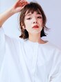 肩のラインの外ハネと透け感ある顔まわり、オン眉フリンジバングでラブフェミニンに仕上げたエアリーミディ。カジュアルな雰囲気の中に女性らしいやわらかさと色っぽさを隠し味に♪ノームコアなナチュラルボブやストレートミディからイメチェンしたい方に◎